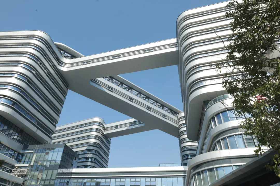 项目核心枢纽——国内首个双层三通道四塔斜交Z型钢连廊,1200吨钢结构需在51.5米高空完成无缝对接,既要承载医疗设备运输、大规模人流集散的多重荷载,更要实现门诊、检查、住院三大核心区域的无缝流转,其受力体系复杂程度远超常规建筑。总包公司自主研发“液压集群式同步提升技术”与“实时应力监测系统”,采用分块预制后整体提升的科学方案,以±2毫米精度实现毫米级合拢,将患者就医路径缩短40%。该技术经行业专家评审获评“国际先进水平”,为同类医用大跨度连廊施工提供了可复制、可推广的技术范式。