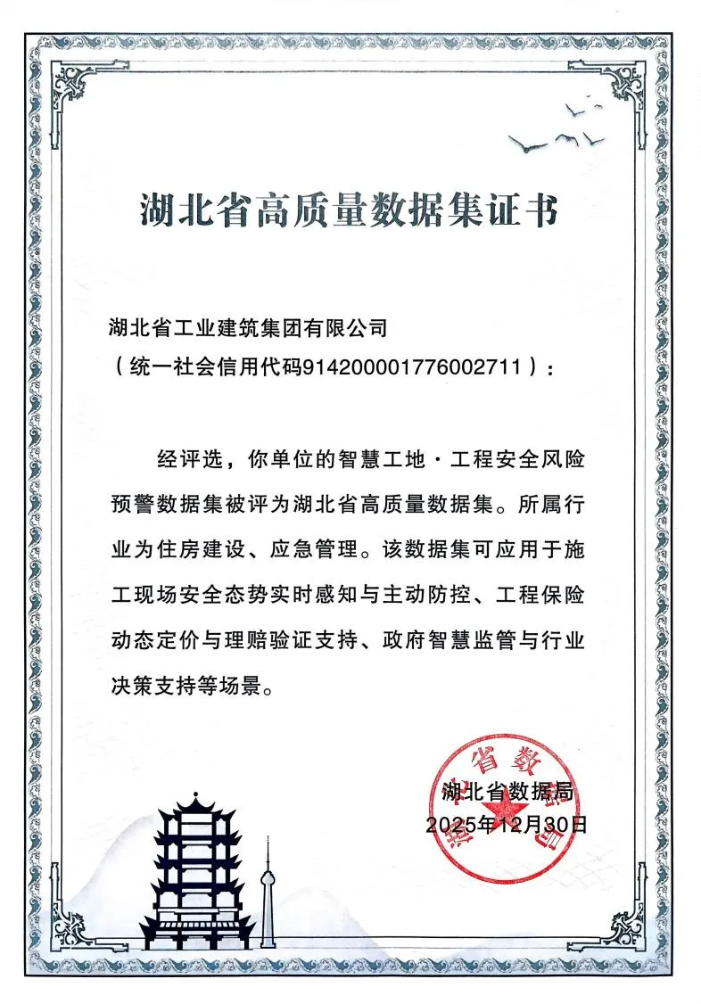 近日,湖北省数据局发布了第三批湖北省高质量数据集名单,湖北工建自主研发的“智慧工地·工程安全风险预警数据集”成功入选。这不仅是对该数据集合规性、数据质量及应用价值的高度认可,更彰显了湖北工建在工程建设数字化、智能化领域的扎实实践与领先实力。